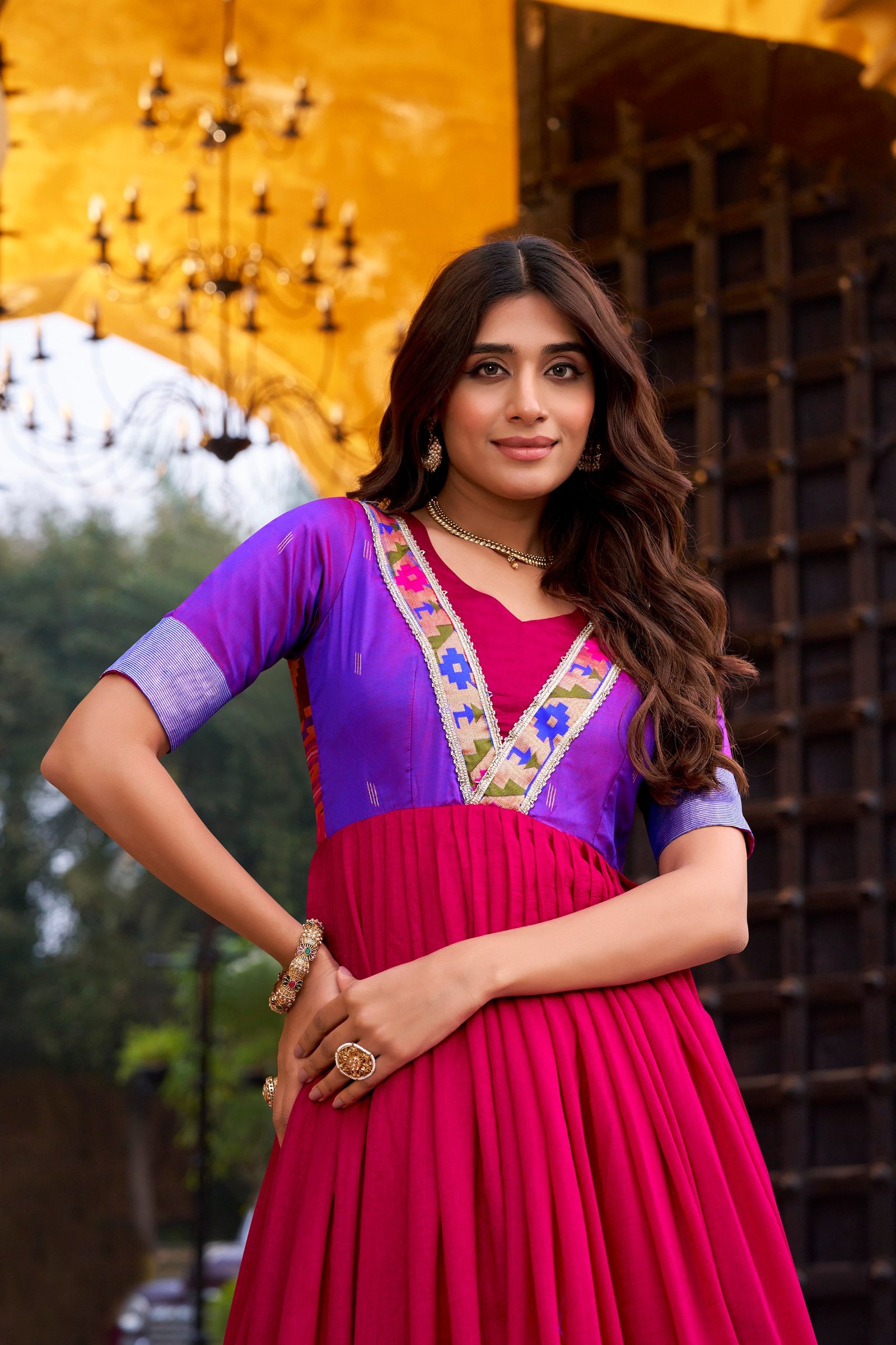 An elegant blend of comfort and tradition, designed in luxurious Vichitra Silk with a beautifully flowing flair YNF5304PNK