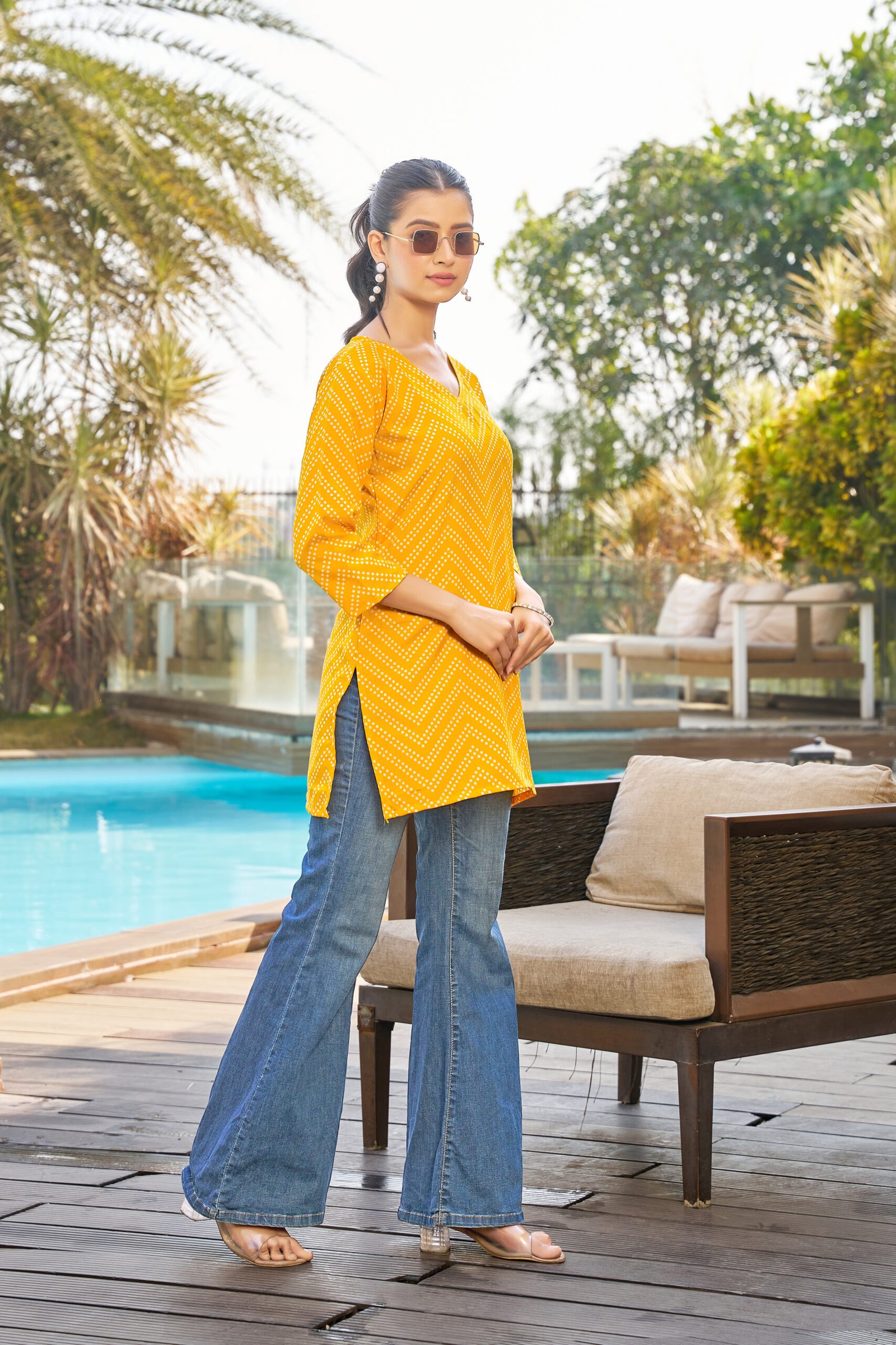 Be the first to review “Musturd Line Printed Poli Riyon Top Yellow Colour”