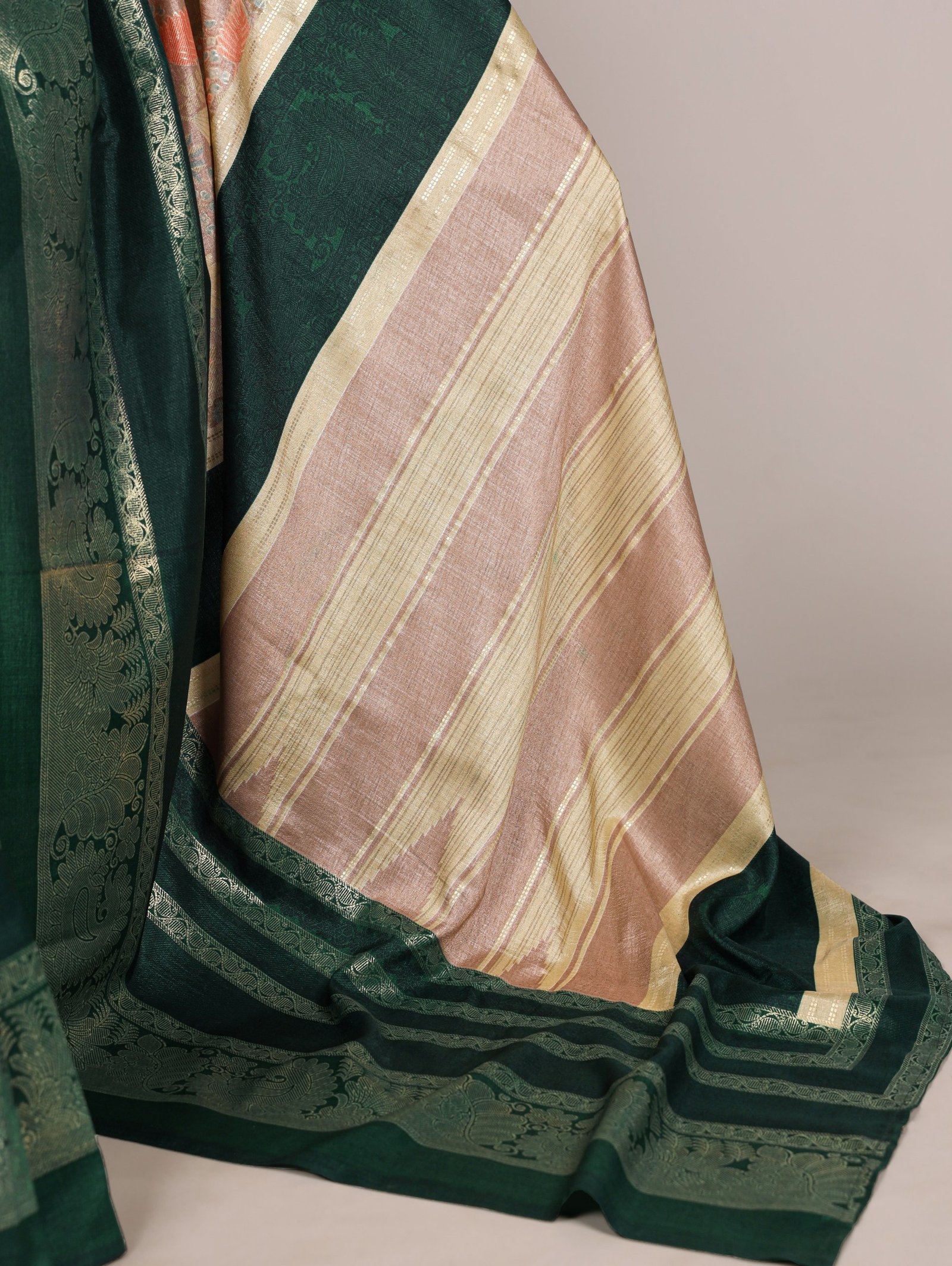 Celebrate timeless elegance with this beautiful Tasar Silk saree, adorned with delicate floral prints and subtle foil work that adds a graceful shine YNF7302GRN