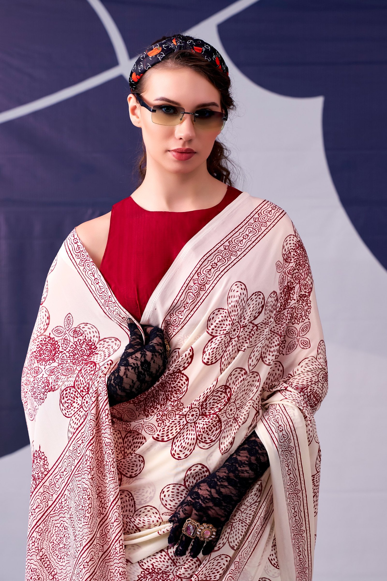 Classic beauty redefined with its silky smooth texture and artistic floral detailing, this saree is the perfect blend of tradition and trend YNF7210MRN