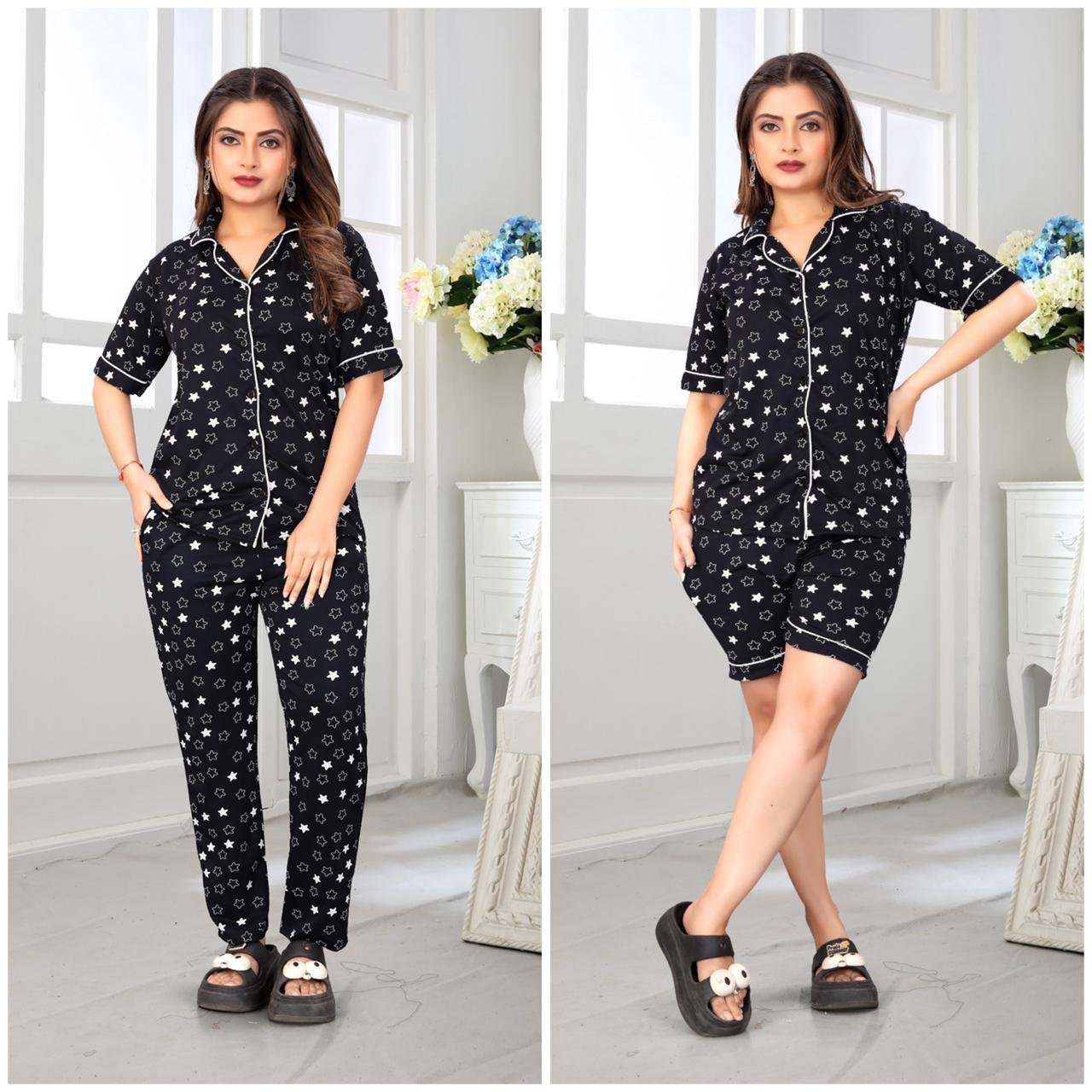 Premium quality Surati fabric nightwear now available in 6 different attractive prints and colours. Designed for comfort and style, this set is perfect for daily wear and relaxed nights.
