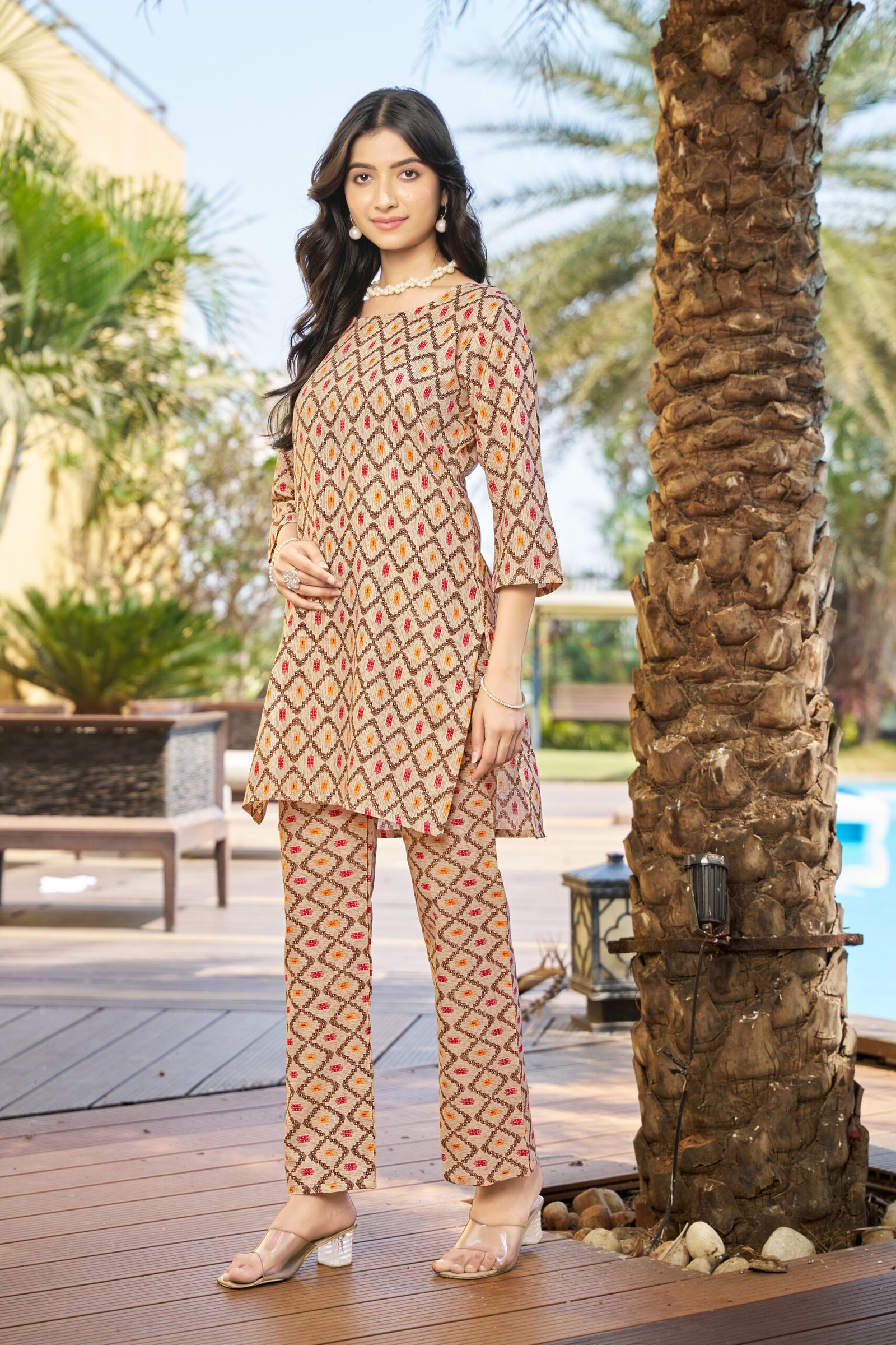 Crafted from premium Magic cotton fabric, the set offers breathability and a soft feel, ensuring all-day comfort while maintaining a graceful and trendy appearance.