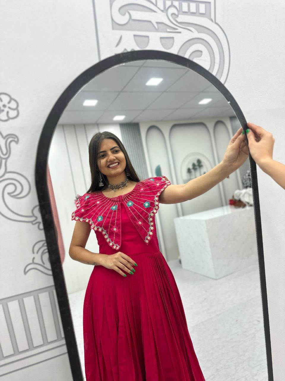 Be the first to review “Launching Trending Handwork Gown Heavy Embroidery Thread Khatli Work In Red colour”